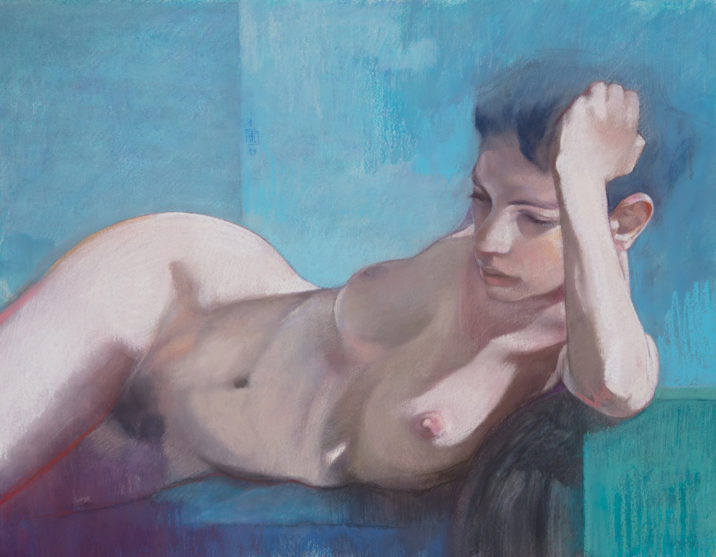 … I work with several mediums but have grown a strong love for pastels… I collect them, and have developed a very personal technic allowing me to explore with the textures and effects they offer to serve my love of colours… free from the subject, I dive in pigments and try to give them a voice.